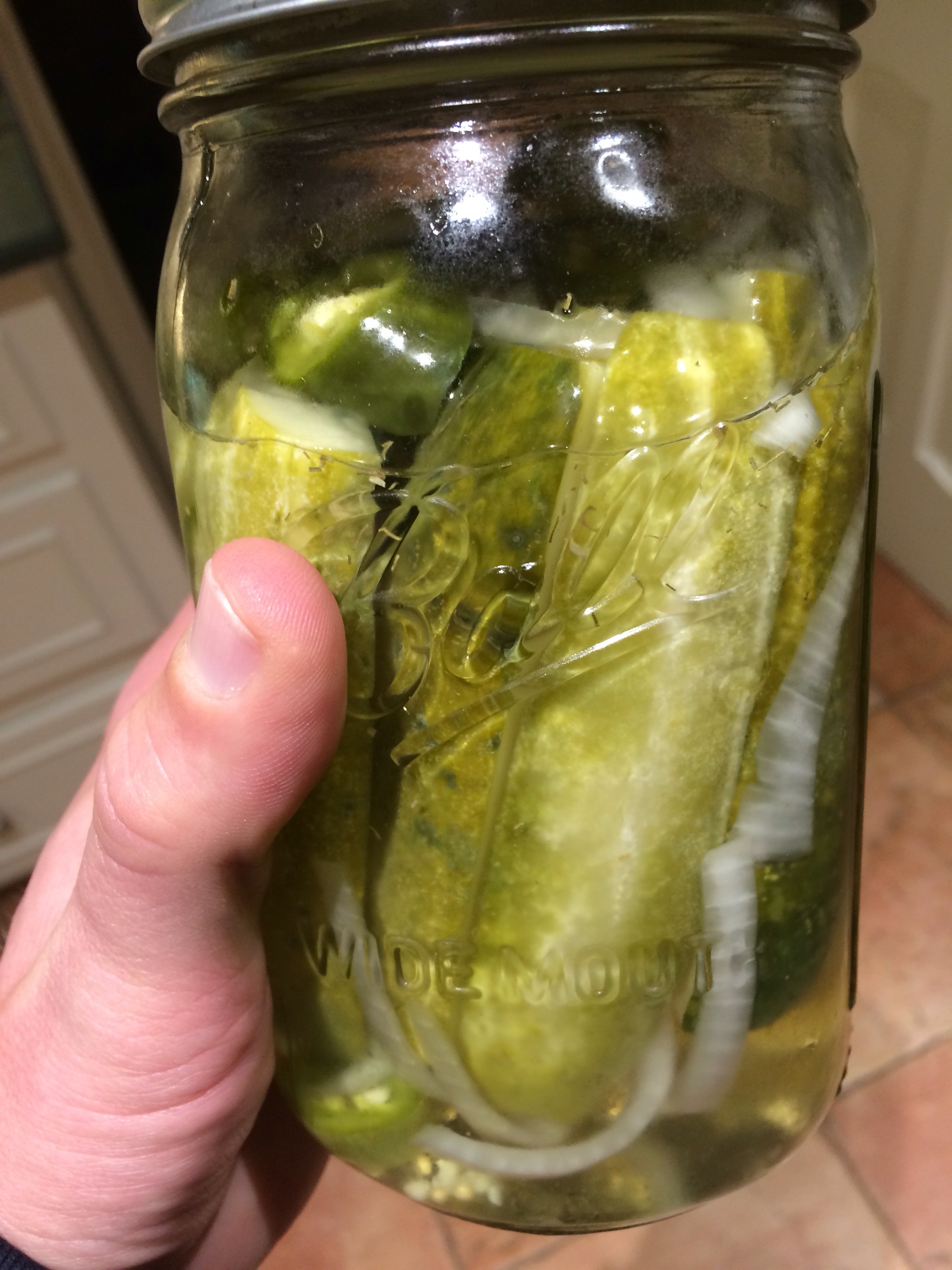 Now go find a glass jar with a lid that looks like pickles might fit into it.